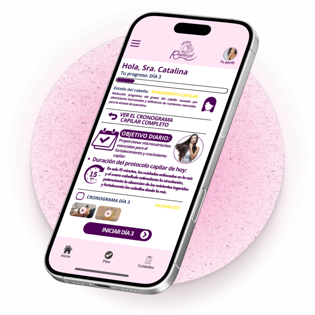 Imagina tener el control total de tu plan en la palma de tu mano. En la app exclusiva del Método Rapunzel encontrarás tu cronograma, recetas, clases, recordatorios y un seguimiento completo. Todo organizado para que nunca pierdas el enfoque.
